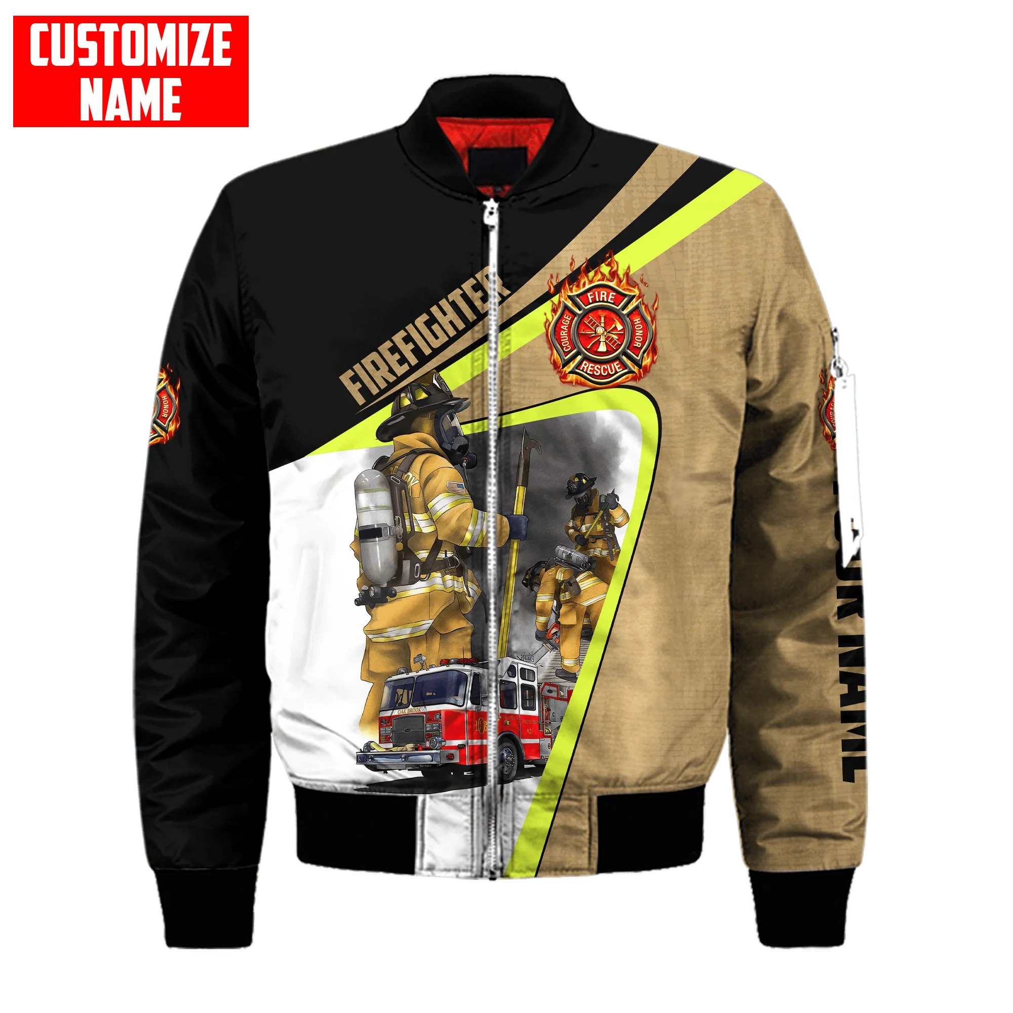 Men bomber jacket Customize Name Brave Firefighter 3D Printed winter zipper Jacket casual unisex Harajuku Streetwear coat FX-07
